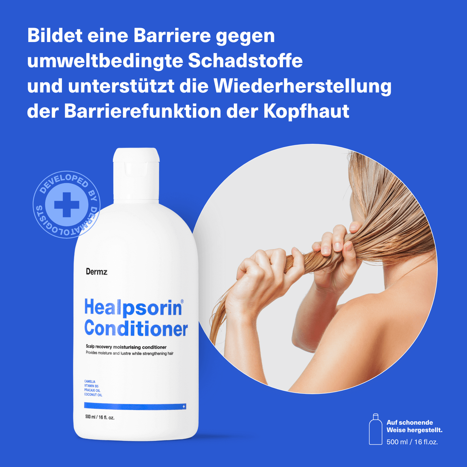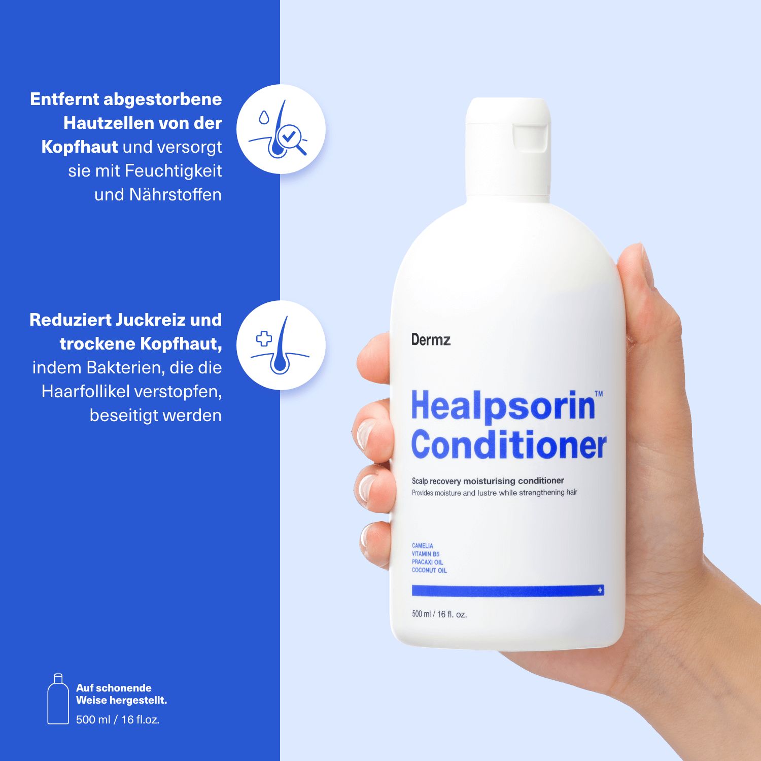 Erleben Sie den Luxus eines Spa-Tages bei jeder Haarwäsche mit dem Healpsorin Conditioner, Ihrer One-Stop-Lösung für eine gepflegte Kopfhaut und revitalisiertes Haar.
