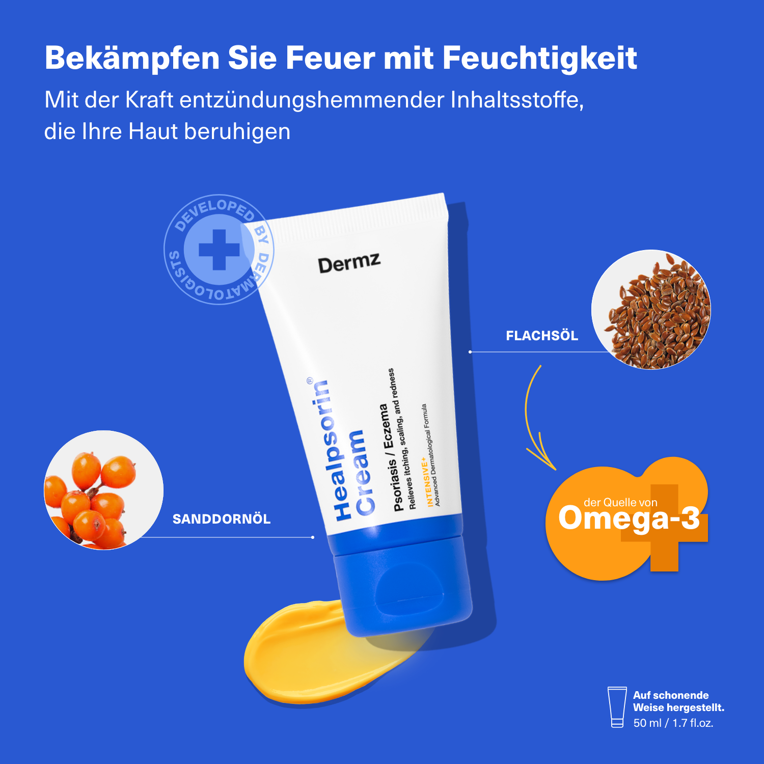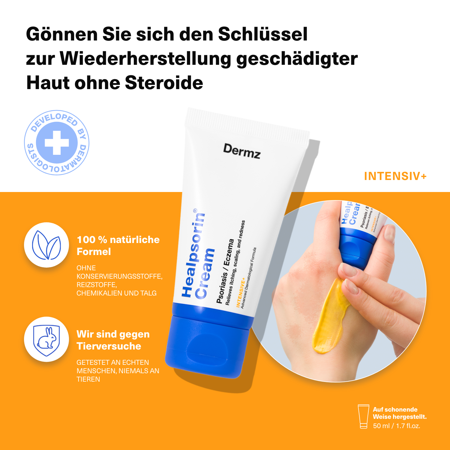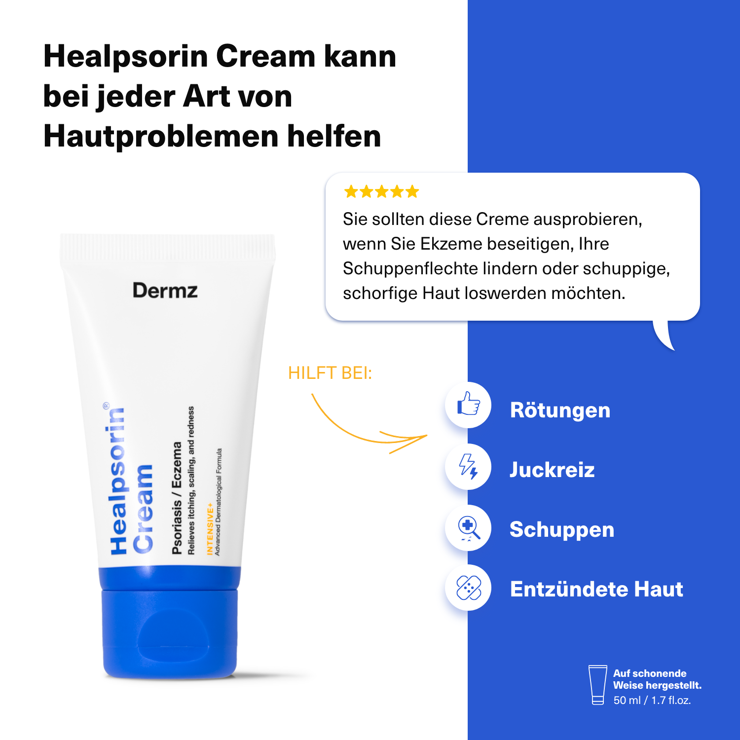 Healpsorin-Creme ist Ihr bevorzugter Verbündeter bei der Bekämpfung leichter Schübe und der gezielten Linderung von Ekzemen, Dermatitis und Psoriasis.