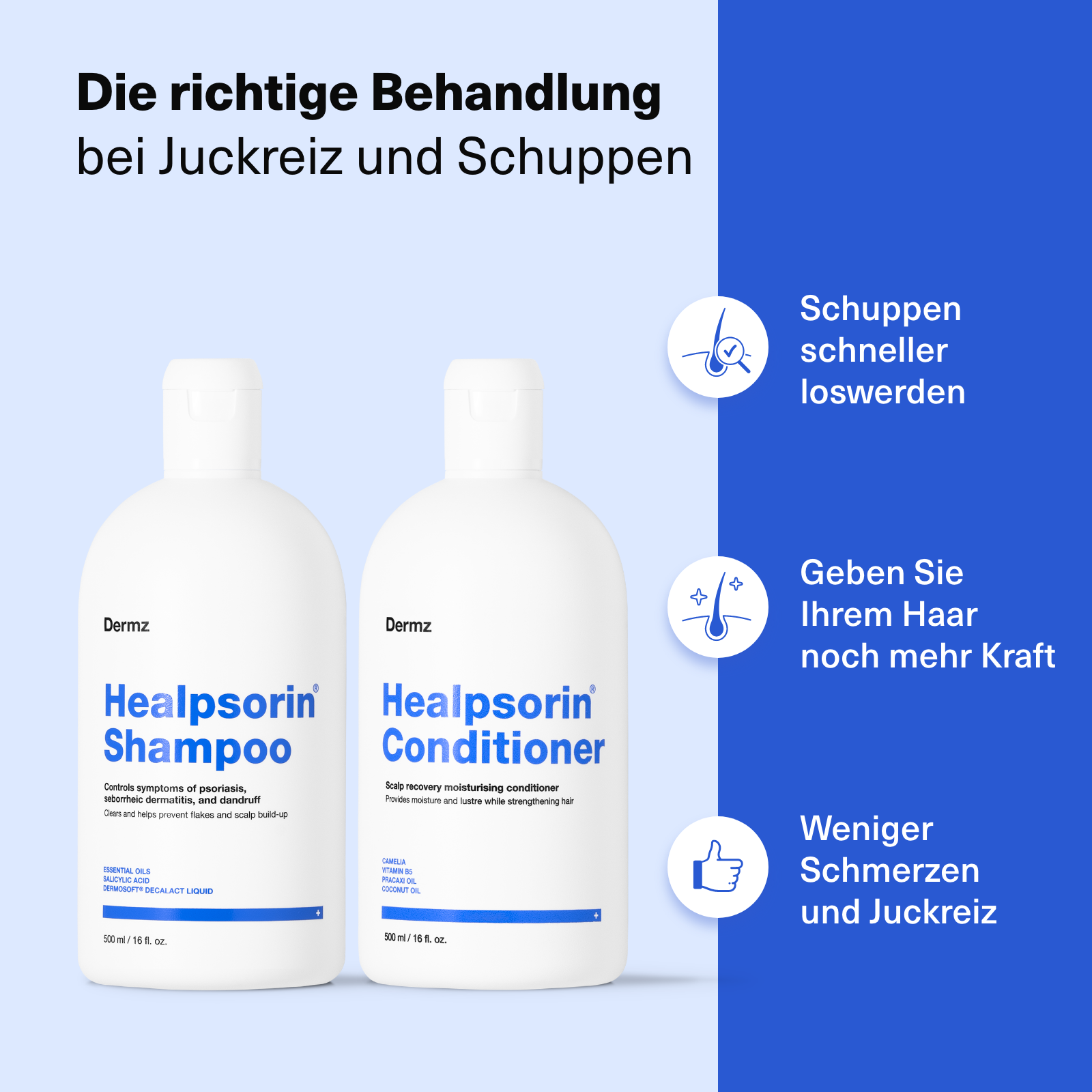 Diese perfekte Synergie aus Shampoo und Conditioner wurde entwickelt, um eine umfassende Lösung für alle zu bieten, die mit trockener, juckender Kopfhaut und glanzlosem Haar zu kämpfen haben. Erlebe sofortige Erleichterung und entdecke das volle Potenzial deines Haares mit der intelligenten Pflege, die nur Healpsorin bieten kann.