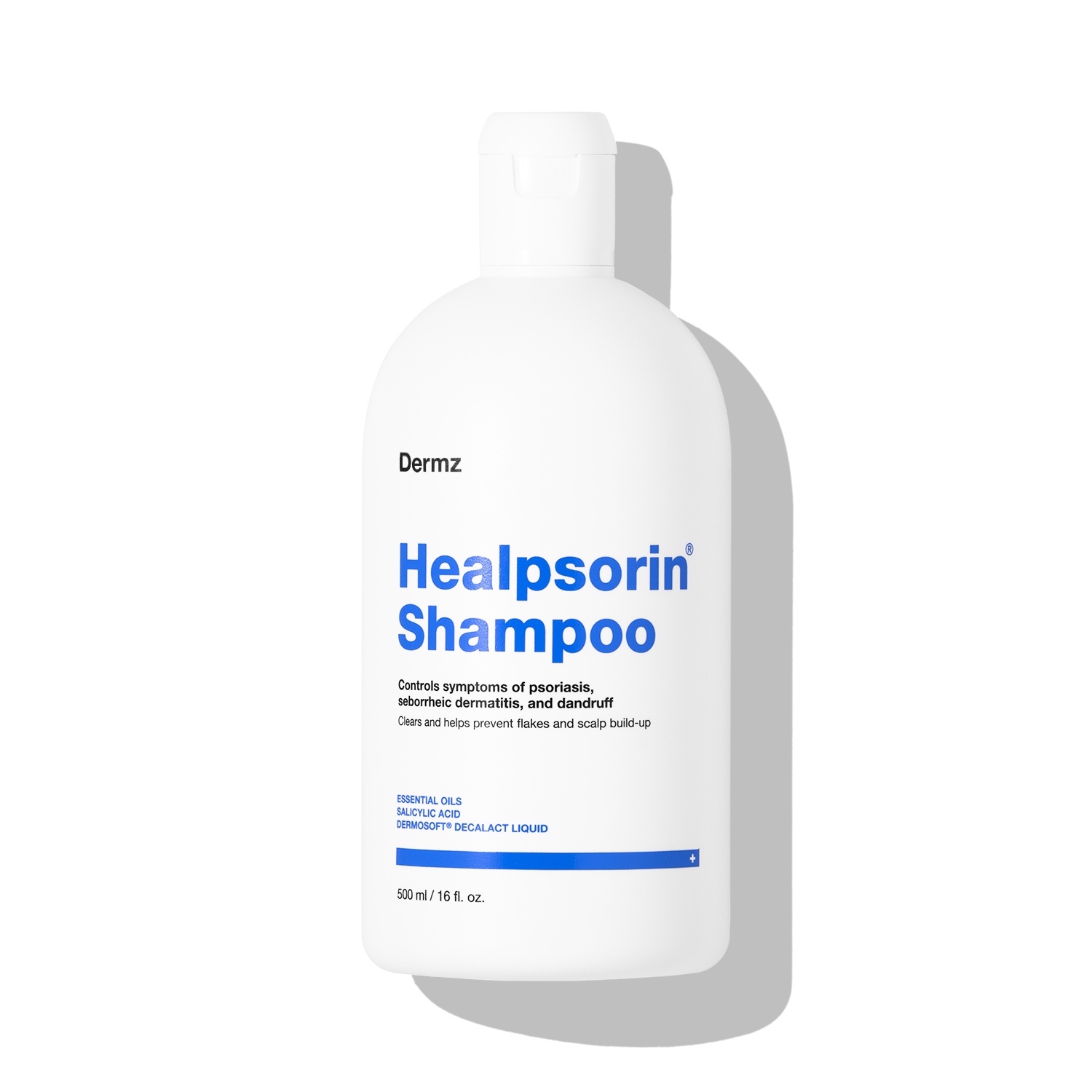 In the first phase, Healpsorin shampoo gently removes dead skin cells, and brings balance to the scalp microbiome, moisturizing the skin and reducing irritation.