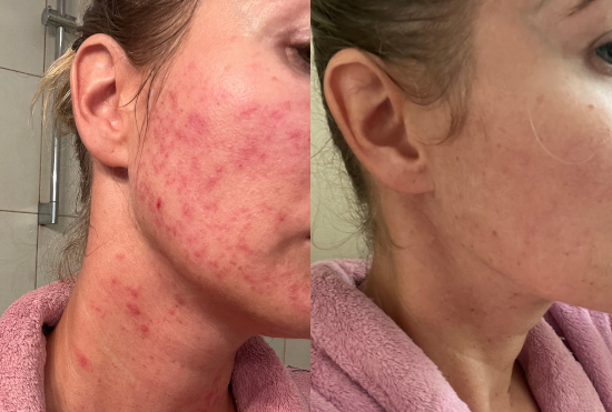 My skin finally has a nice texture without pimples. I no longer have to cover up the problem. Thank you ❤️