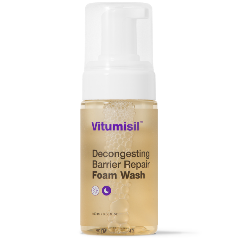 Vitumisil Foam: Aqua, Glycerin, Decyl Glucoside, Sodium Cocoamphoacetate, Cocamidopropyl Betaine, Polysorbate 20, Trifolium Pratense (Red Clover) Extract, Tasmannia (Tazman Pepper) Lanceolata Fruit/Leaf Extract, Betaine, Polylysine, Inulin, Phenoxyethanol, Ethylhexylglycerin, Parfum, Sodium Chloride.