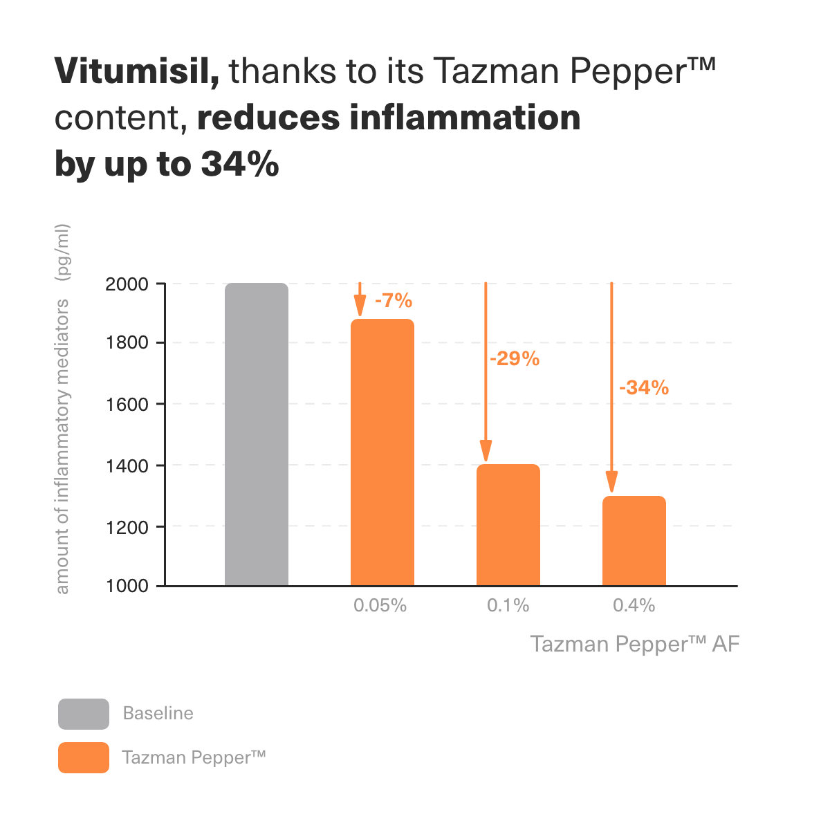 With the presence of Tazman Pepper™ AF, Vitumisil effectively and naturally soothes reactive skin prone to itching and burning. Say goodbye to constant scratching, burning sensations, and irritation!