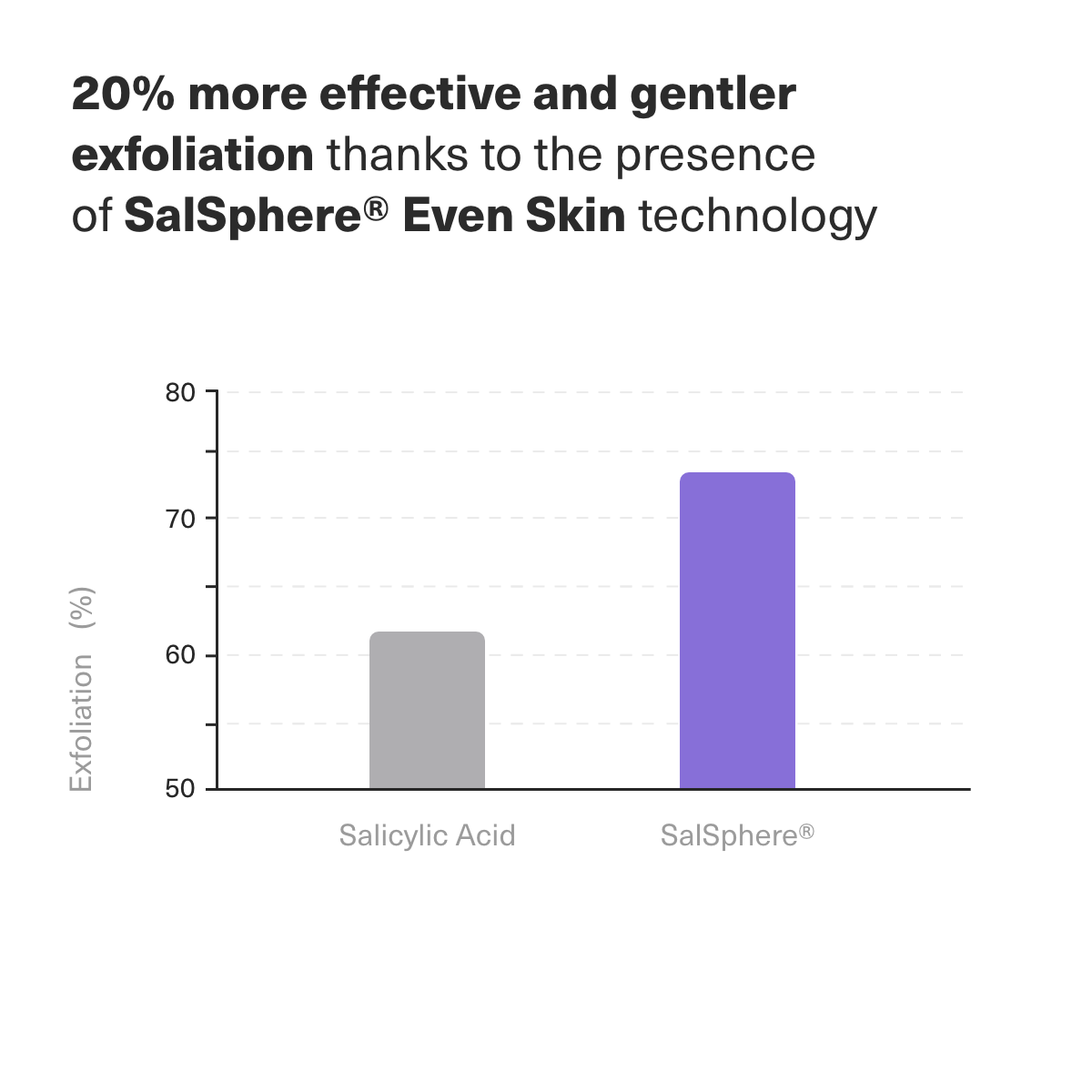 Clinical studies have shown that the advanced SalSphere® Even Skin submicron technology provides 20% more effective and gentler exfoliation compared to free salicylic acid molecules. Thanks to its presence in Vitumisil products, there's no need to worry about irritation or a disrupted skin barrier – exfoliation here is a gentle process!